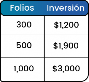Adquiere tus folios al mejor precio del mercado ¡Nos ajustamos a cualquier presupuesto! Comienza a facturar ahora y experimenta todos los beneficios que nuestro sistema tiene para ti. Regístrate ya Ingresa Comprar Folios PASO 1 Registra tu RFC Regístrate PASO 2 Elige tu paquete y realiza tu compra PASO 3 Notifica tu compra Envia tu RFC y comprobante a: cuentasclaras22@gmail.com o vía whatsapp: 981 208 8357